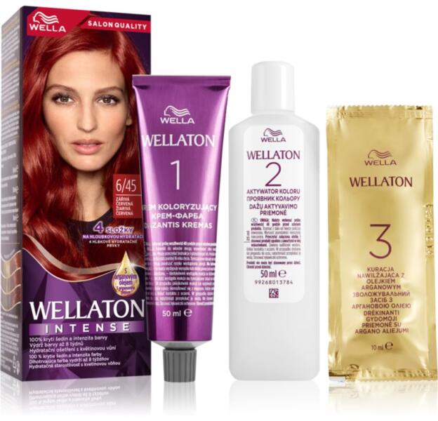 Wella Wellaton Intense, 1 db, Hajfestékek nőknek, Hosszan tartó, élénk színt szeretne, elfedné az ősz hajszálakat vagy teljesen megváltoztatná a hajszínét? Az ideális Wella Wellaton Intense tartós hajfesték biztosítja a kívánt eredményt. Intenzív színt és élénk fényt kölcsönöz a hajnak, de a félig tartós festékekkel, fedőfestékekkel és színezett samponokkal elle