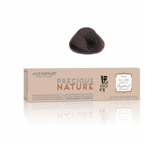 Alfaparf Precious Nature ammóniamentes hajfesték 7.21- Ammónia, -PPD, - és rezorcin mentes hajfesték - Természetes összetevőket, valamint rizstejet és cukrot tartalmaz - A rizstej kiválóan táplálja, míg a cukor gyönyörűen fényessé és csillogóvá varázsolja a hajat - Az Alfaparf Precious Nature 7.21-es hajfesték plusz összetevője a mogyoró, amely megvédi hajunk színét a