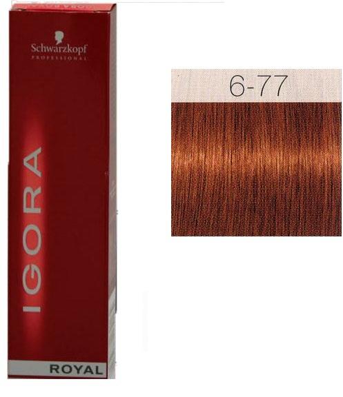 IGORA ROYAL 6-77 Dark Blonde Copper Extra tartós krémhajfesték 70%-ig terjedő ősz haj fedéssel. A hajfesték mindenféle festési technikához használható. Réz extra színirányt biztosít. Az IGORA ROYAL High Definition Technológia magas minőségű pigment mátrixokat használ a legtisztább tónusok, a tincshű eredmény, intenzív színek és a maximális ősz haj fedés eléréséhe