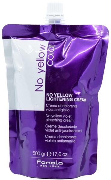 A Fanola No Yellow Lightening Cream lila krém a hajszín eltávolítására, színes mikropigmentekkel eltávolítja a nem kívánt sárga árnyalatokat a hajból, és platinaszőkét ad a hajnak. Ez a színeltávolító krém nem tartalmaz szilícium-dioxidot vagy titán-dioxidot, így a hajszín eltávolítása kíméletes lesz, és nem kell aggódnia a haj károsodása miatt. Az alkalmazás ut
