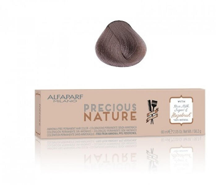 Alfaparf Precious Nature ammóniamentes hajfesték - Ammónia, -PPD, - és rezorcin mentes hajfesték - Természetes összetevőket, valamint rizstejet és cukrot tartalmaz - A rizstej kiválóan táplálja, míg a cukor gyönyörűen fényessé és csillogóvá varázsolja a hajat - Az Alfaparf Precious Nature 9.1-es hajfesték plusz összetevője a mogyoró, amely megvédi hajunk színét a kifa