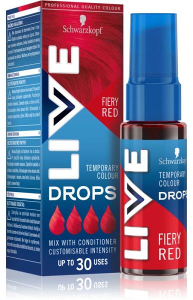 Schwarzkopf LIVE Drops, 30 ml, Kimosható hajszínezők nőknek, Tulajdonságok: a hatás hosszának beállításával különböző intenzitású színhatások érhetők el