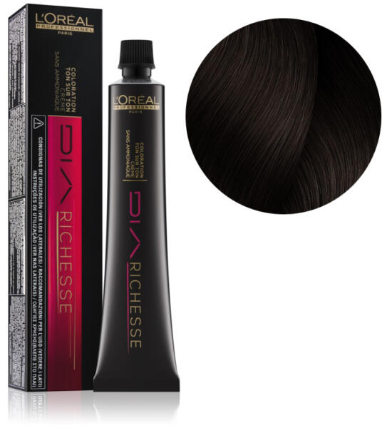 A L’Oréal Professionnel Dia Richesse ammóniamentes, félig állandó hajfesték tökéletesen elfedi az ősz hajszálakat, gazdagon és mélyen csillogóvá teszi a hajat, a „tónus a tónusban technológiának köszönhetően pedig a haj természetes szépségét is kiemeli. Festés után a haj egészséges, gazdag, selymesen csillogó és sima lesz. Tulajdonságai - akár 70%-ban ősz hajr