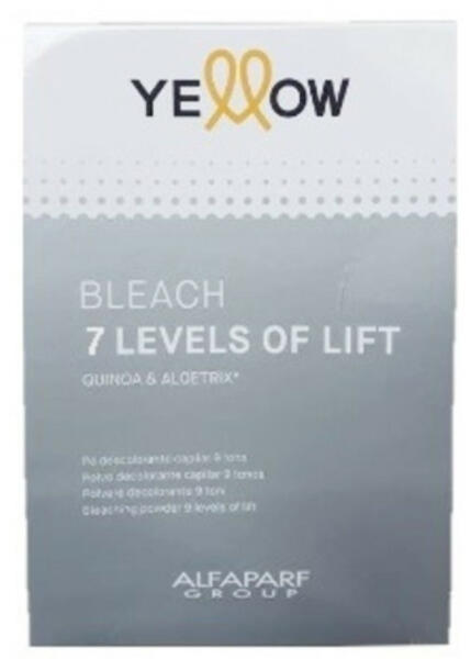 Hajfestés > Szőkítés Yellow Bleaching Powder szőkítőpor, 50 g A Yellow szőkítőpor egy nagy világosító kapacitással rendelkezô kék színű por, amely utóbbi tulajdonságának köszönhetôen semlegesíti a nem kívánt sárga árnyalatokat Használata: - Egy nem fémből készült tálkában keverjen össze 100 ml Yellow Peroxido krémhidrogénnel, a keverési arány 1:2 - Majd