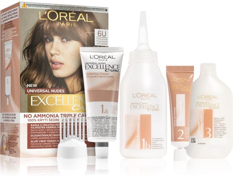 L’Oréal Paris Excellence Universal Nudes, 1 db, Hajfestékek nőknek, Hosszan tartó, élénk színt szeretne, elfedné az ősz hajszálakat vagy teljesen megváltoztatná a hajszínét? Az ideális L’Oréal Paris Excellence Universal Nudes tartós hajfesték biztosítja a kívánt eredményt. Intenzív színt és élénk fényt kölcsönöz a hajnak, de a félig tartós festékekkel, fedőfe
