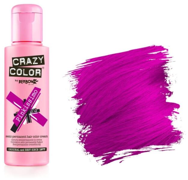 Hajfestés > HajszínezőCrazy Color hajszínező krém, 100 ml- Krémes állagú hajszínező, kb. 4-8 mosásig tart, amely hajtípustól függően és a hajmosás gyakoriságától függően változhat - A Crazy Color hajszínező krém oxidálószert nem tartalmaz, felvilágosító hatása nincs, ezért a legszebb színeredmény előszőkített hajon érhető el - A sötét hajnak fényt ad,