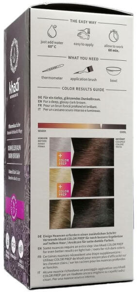 Ragyogó szín a természet erejével: teltség és fény, más színekkel keverhető, mesterséges színezék mentes. 100 g-os növényi hajfesték; Khadi termék hajfestéshez.
