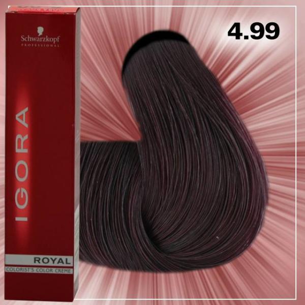Gyártó: Schwarzkopf Modell: Igora Royal 4-99 Hajfesték 60ml Leírás: A Schwarzkopf Professional IGORA Royal hajfesték intenzíven színezi a hajat, tökéletesen elfedi az ősz hajszálakat és különleges, ápoló összetevőket tartalmaz, amelyeknek köszönhetően a haj szó szerint ragyogni fog az egészségtől. Engedje meg magának ön is ezt az luxust!