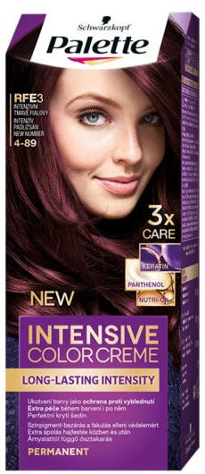 Termékleírás Jellemzők Multi-Care hajfestés közben és után, Hosszan tartó intenzív színeredmény, 100%-os őszhajfedés Termék információk Palette Intensive Color Creme - Ápoló és hosszan tartó krémhajfesték A Palette ICC intenzív krémhajfestékben lévő keratin, valamint az ápoló maszkban található pantenol és regeneráló szérum többszintű ápolást biztosít a haj