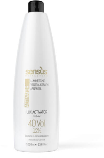 Sensus Activator Cream Lux 12% 40vol. Ez a luxus stabilizált oxidáló krém növényi keratinnal, argánolajjal és luminiscinnel dúsított, hogy a haj ragyogó és ellenálló legyen. Ideális professzionális hajfestési és világosítási eljárásokhoz. . Jellemzői:. Növényi keratin: 18 aminosav keveréke, amely erősíti és javítja a haj rugalmasságát. . Luminiscin: Az UV-sugarakat