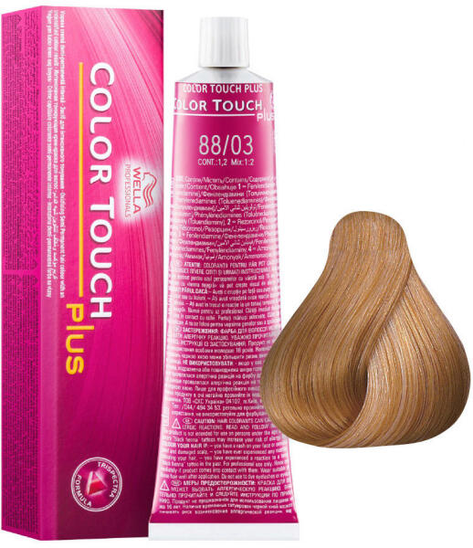 Wella Professionals Color Touch Plus intenzív hajszínező 88/03 - Többdimenziós, ammóniamentes, intenzív színezőkrém - 70%-os őszfedést biztosít, 50%-kal nagyobb csillogást nyújt a hajnak - A roncsolt, fakult hajat újjáépíti, fényessé, kezelhetővé teszi Összetevői: Aqua/Water, Cetearyl Alcohol, Ethanolamine, Laureth-3, Sodium Laureth Sulfate, Glyceryl Stearate SE, Toluene-2