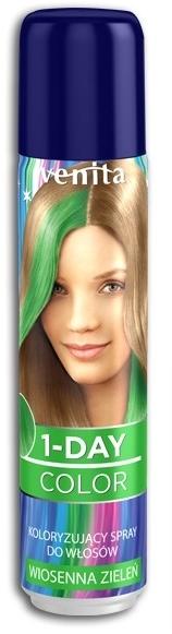 Zöld kimosható színező spray kiváló megoldás azoknak akik csak alkalmanként akarják megváltoztatni a hajszínüket. A termék lehetővé teszi az egész haj vagy csak egy pár tincs színezését. Bulizáshoz, farsangra, fesztiválokra stb. A kozmetikai termék enyhe összetevőket tartalmaz, ammónia, oxidálószerek és más káros hatóanyagok nélkül. Ez segít, hogy hatékony és b