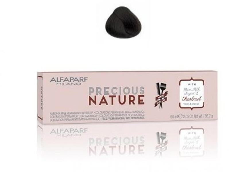 Alfaparf Precious Nature ammóniamentes hajfesték- Ammónia, -PPD, - és rezorcin mentes hajfesték - Természetes összetevőket, valamint rizstejet és cukrot tartalmaz - A rizstej kiválóan táplálja, míg a cukor gyönyörűen fényessé és csillogóvá varázsolja a hajat - Az Alfaparf Precious Nature 9.1-es hajfesték plusz összetevője a mogyoró, amely megvédi hajunk színét a kifak