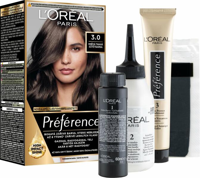 Hosszantartó hajfesték, amely ragyogó színeket eredményez különleges összetételének köszönhetően - A krémzselés alap könnyen kikeverhető és felkenhető festéket eredményez - 100% őszfedést biztosít - Használatával a haj kétszer jobban ellenáll a töredezésnek - A természetes, nem festett hajnál kétszer nagyobb fényt biztosít a hajnakHárom lépésben biztosít lél