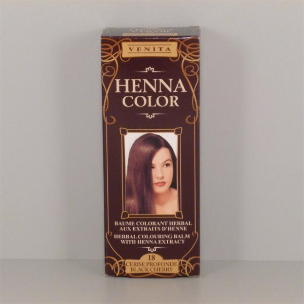Henna Color szinező hajbalzsam nr 18 fekete meggy 75 ml Természetes hatóanyagú gyógynövényekből készült amóniamentes hajfesték, a gyógynövénykivonatok ápolják és óvják a hajat a festés közben, a henna kivonat pedig gondoskodik az egészséges csillogásról, hosszantartó, intenzív színélményt nyújt.