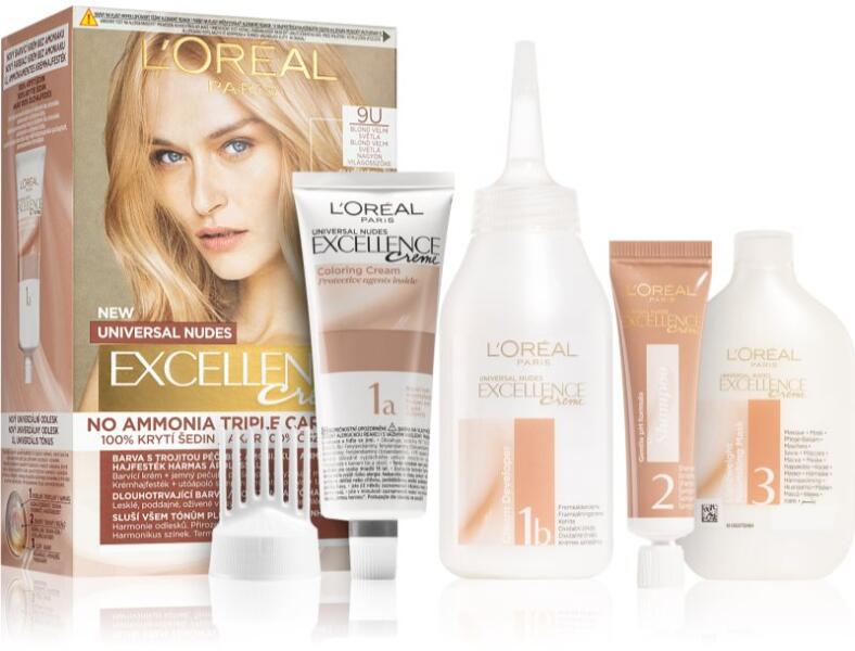 L’Oréal Paris Excellence Universal Nudes, 1 db, Hajfestékek nőknek, Hosszan tartó, élénk színt szeretne, elfedné az ősz hajszálakat vagy teljesen megváltoztatná a hajszínét? Az ideális L’Oréal Paris Excellence Universal Nudes tartós hajfesték biztosítja a kívánt eredményt. Intenzív színt és élénk fényt kölcsönöz a hajnak, de a félig tartós festékekkel, fedőfe