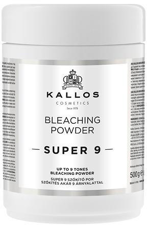 Kallos Super 9 szőkítőpor, 500 g - Ultra hatékony világosító hatású szőkítőpor, amely akár 9 árnyalatot képes világosítani a hajon - Használata során kíméli a hajat, megőrizve annak egészségét - Valamennyi szőkítő eljáráshoz ajánljuk a használatát Használata: - Öntse a szőkítőport egy nem fém edénybe, és keverjen hozzá igény szerint 3,6, 9 vagy 12% erpss