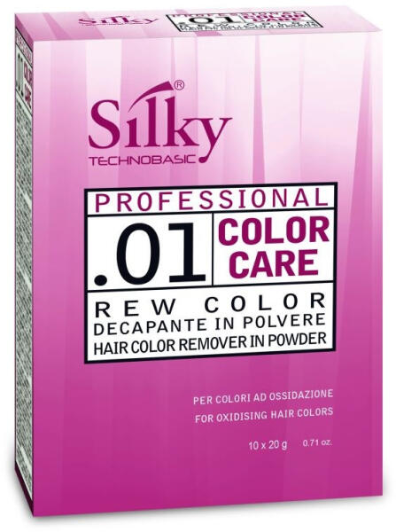 Silky Rew Color hajradír, 10x20 g - Hajszínleszedő por a hajfestékek színpigmentjeinek eltávolításához - Retusál, javítja és eltávolítja a hajfestéket anélkül, hogy a haj eredeti színét befolyásolná és a hajszálak természetes pigmentjeit megváltoztatná - A Silky Rew Color hajradír finom hatása révén a hajszerkezetet érintetlenül hagyja, és nem világosítja a term