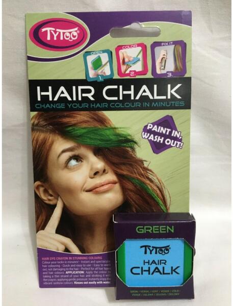 Rendkívül egyszerűen használható, zöld színű hajszínező kréta. Csak fogjon be egy tincset a hajszínező krétás dobozkába, húzza végig a tincsen, és már kész is van a színes haj... Vízzel könnyedén kimosható, a hajat nem roncsolja.