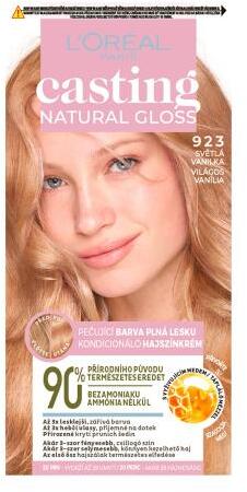 L'Oréal Paris Natural Gloss magas fényt biztosító, és természetes összetevőket tartalmazó ápoló hajszínező. Milyen tulajdonságokkal tűnik ki a L'Oréal Paris Natural Gloss hajszínező? gazdag színt ad a hajnak, kisimítja, fényessé és puhává varázsolja a hajat, az összetevők 90%-a természetes eredetű, nem tartalmaz ammóniát és szilikont, az ápoló hajbalzsam mézet t