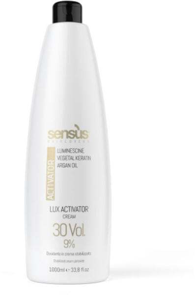 Sensus Activator Cream Lux 9% 30vol. Ez a luxus stabilizált oxidáló krém növényi keratinnal, argánolajjal és luminiscinnel dúsított, hogy a haj ragyogó és ellenálló legyen. Ideális professzionális hajfestési és világosítási eljárásokhoz. . Jellemzői:. Növényi keratin: 18 aminosav keveréke, amely erősíti és javítja a haj rugalmasságát. . Luminiscin: Az UV-sugarakat