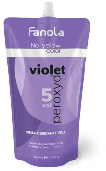 Fanola No Yellow lila krémperoxid 5 Vol (1,5 %), 1 l - A krémes állagú oxidáns lila pigmentekkel- Tökéletesen alkalmas a sárga árnyalatok kezelésére már a világosítás során- Ideális hajfestéshez és világosításhoz- Kiváló világosító teljesítmény, elősegíti a hideg pigmentek egyenletes megkötését- Szőkítővel keverve segíti a fokozatos és természetes hatású v