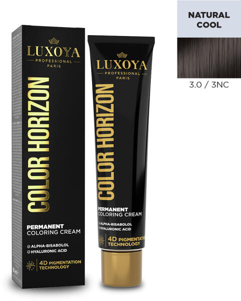 COLOR HORIZON professzionális ápoló krémhajfesték: intenzív színek, időtállóság, ápoló összetevők, 100% őszhaj-fedés, 4D pigmentáció Termékleírás: A LUXOYA PROFESSIONAL PARIS - COLOR HORIZON hajfesték hozzájárul a lenyűgöző, tartós és ápolt hajszínhez minden vendég számára. Fényesség: Argania spinosa (más néven marokkói olaj) egy örökzöld cserje, amely D