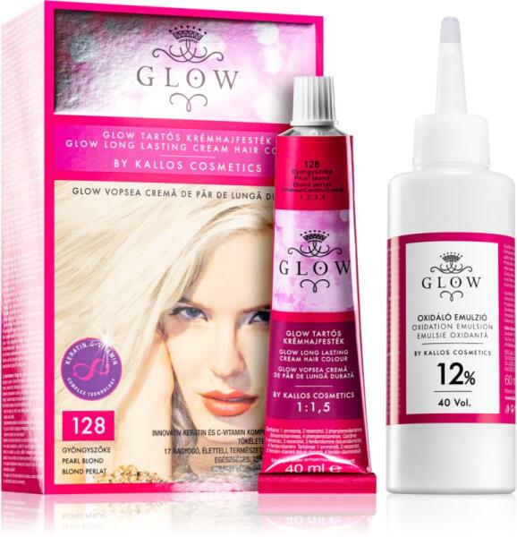 Kallos Glow, 100 ml, Hajfestékek nőknek, Hosszan tartó, élénk színt szeretne, elfedné az ősz hajszálakat vagy teljesen megváltoztatná a hajszínét? Az ideális Kallos Glow tartós hajfesték biztosítja a kívánt eredményt. Intenzív színt és élénk fényt kölcsönöz a hajnak, de a félig tartós festékekkel, fedőfestékekkel és színezett samponokkal ellentétben nem mosódi