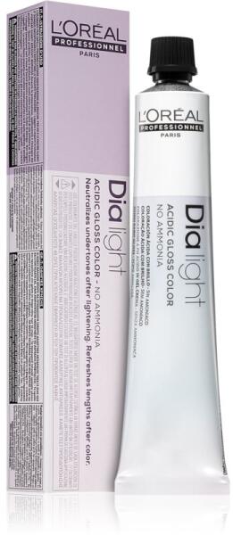 L’Oréal Professionnel Dia Light, 50 ml, Tartós hajfesték nőknek, A minőségi L’Oréal Professionnel Dia hajfesték intenzív árnyalatot és ragyogó fényt ad a hajának. Tulajdonságok: hosszan tartó hatású megújítja a színt professzionális használatra Összetétel: ammóniamentes Használata: Kizárólag professzionális használatra. A csomagoláson feltüntetett útmutatás s