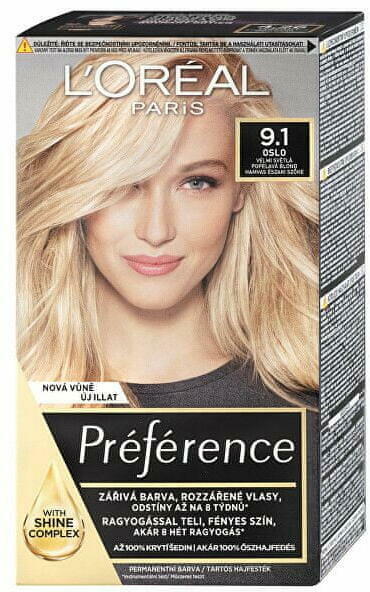 A Préférence hajfesték sugárzó színt kölcsönöz akár 8 hétig. A legszebb szín egy olyan szín, amely még mindig fényes és intenzív! A festék 100% -osan fedi az ősz hajszálakat. Tulajdonságok: hajfesték, 100% -osan fedi az ősz hajszálakat, ragyogó fényt kölcsönöz a hajnak, magas színállóság 8 hétig, tartós és ultra-intenzív szín, selymes hajkoronát eredményez,