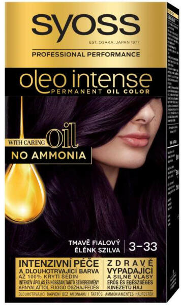 Syoss Color Oleo Intenzív olaj hajfesték, 3-33 Élénk szilvaAz ammóniamentes, tartós olajhajfesték gyengéd a hajhoz, miközben árnyalattól függő ősztakarást biztosít. A formulában található ápoló olajok segítik a színpigmenteket, hogy mélyen a hajszálalak rostjaiba hatoljanak, így biztosítva a gazdag, hosszan tartó színeredményt. A hajbalzsam ápoló fair trade argánol