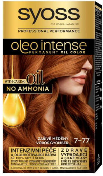 Syoss Color Oleo Intenzív olaj hajfesték, 7-77 Vörös gyömbérGazdag ápolás ammónia nélkül. Az ammóniamentes, tartós olajhajfesték gyengéd a hajhoz, miközben árnyalattól függő ősztakarást biztosít. A formulában található ápoló olajok segítik a színpigmenteket, hogy mélyen a hajszálalak rostjaiba hatoljanak, így biztosítva a gazdag, hosszan tartó színeredményt. A