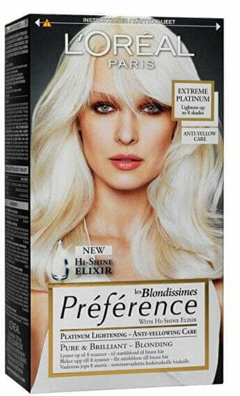 Luxus, extra világosító festék, nagy tartóssággal. Akár 8 hétig fényes haj! Aktív anyagok: Hi -Shine Complex - biztosítja a haj vakító fényét, a végső ápolás UV szűrővel és E -vitaminnal gazdagítva. Tulajdonságai: világos szőke, sötét szőke és barna hajra tervezve, sötétbarna és fekete hajra nem ajánlott.