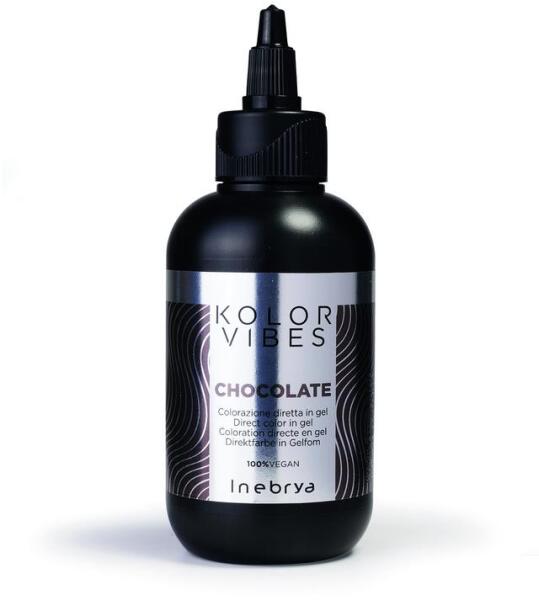 Inebrya Kolor Vibes vegán hajszinező gél, Chocolate, 150 ml- Féltartós direkt ammóniamentes hajszinező gél, oxigenta és ammónia nélkül - Zselés állagának köszönhetően könnyűszerrel eloszlatható egyenletesen a hajon - Savas pH értékű hajszinező, mely egy lépésben szinezi és lezárja a haj szerkezetét, azáltal tartósabb színeredmény érhető el - Természetes, festet