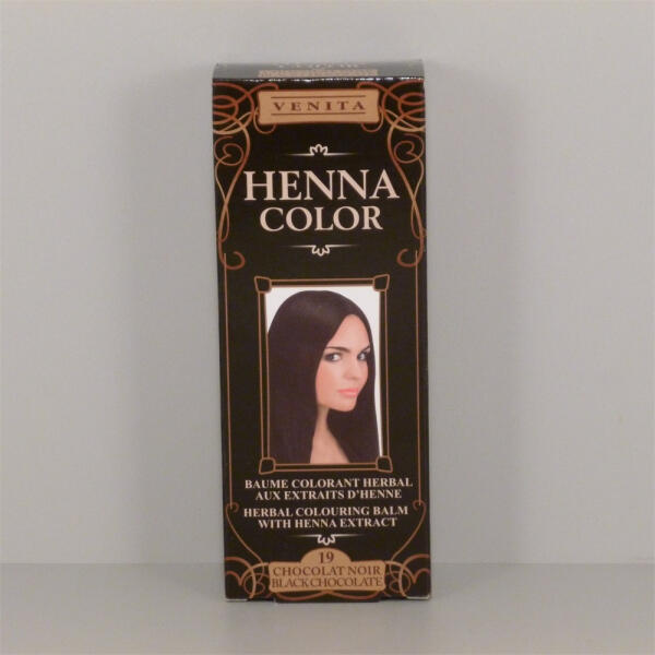 Henna Color szinező hajbalzsam nr 19 fekete csokoládé 75 ml Természetes hatóanyagú gyógynövényekből készült amóniamentes hajfesték, a gyógynövénykivonatok ápolják és óvják a hajat a festés közben, a henna kivonat pedig gondoskodik az egészséges csillogásról, hosszantartó, intenzív színélményt nyújt.