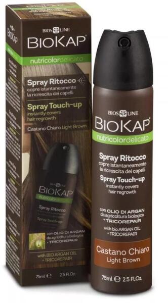 Biokap NutriColor hajtőszínező spray világosbarna, 75 ml - Bio argánolajjal és Tricorepair-rel- Optimális hajtőlefedés természetes végeredménnyel- Egyszerű, biztonságos használat - 1 perces száradási idő - Samponnal azonnal kimosható- Bőrgyógyászatilag- és nikkeltesztelt (nikkel