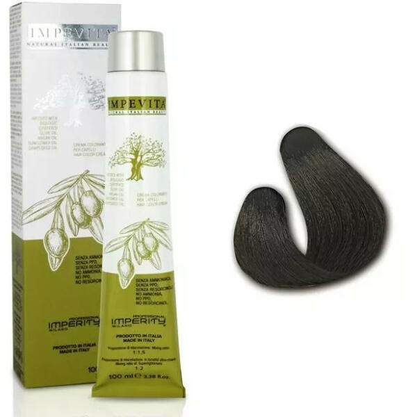 Az Impevita kímélő krémhajfesték garantálja az ősz hajszálak akár 100%-os fedését és a természetes hajszín négy árnyalatú felvilágosítását, A gondosan kiválasztott 4 féle bio olaj: olíva-, argán-, napraforgó-, és szőlőmagolaj egyedi kombinációja biztosítja a természet által nyújtott ápoló, védő hatást a haj számára. Használata: 40vol: 3 vagy 4 árnyalatta