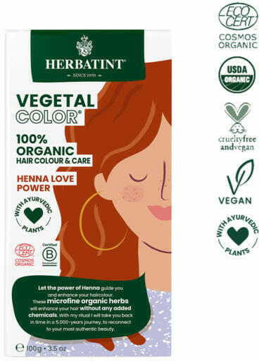 Herbatint Vegetal Color 100%-ban bio, Ecocert tanúsított hajfesték, mely egyszerre ápolja és színezi a hajat. Kizárólag felelősségteljesen termesztett festőnövényekből és ayurvédikus növényekből, használatra kész keverék, a haj festésére, táplálására és regenerálására. Kíméletes gazdálkodásból származó legkiválóbb növények használatával, hogy a termész