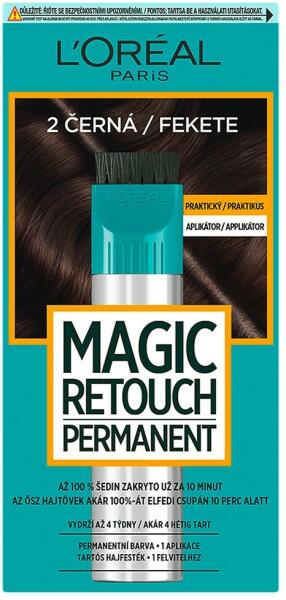 A L'Oréal Paris Magic Retouch permanent egy egyszerű megoldás a hajtövek befestésére. Elvegyül az Ön hajszínével, és 10 perc alatt az ősz hajszálak akár 100%-át is elfedi. A felvitele egyszerű és tiszta a két különböző applikátornak: ecsetes vagy precíz k
