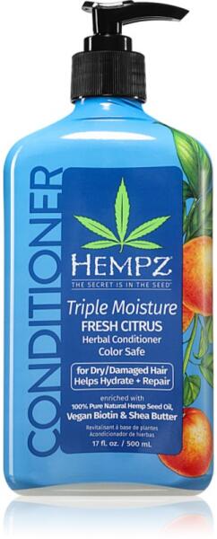 HEMPZ Triple Moisture, 500 ml, Hajkondicionálók nőknek, A minőségi HEMPZ Triple Moisture kondicionáló biztosítja a haj könnyű kifésülhetőségét és a szép és egészséges haj számára nélkülözhetetlen táplálást. Tulajdonságok: kisimítja a hajat és meggátolja a kreppesedését erősíti a hajszálakat meggátolja a hajszálak töredezését biztosítja a haj rugalmasság