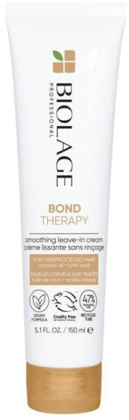Matrix Biolage Bond Therapy kötéserősítő Leave-In hajban maradó krém sérült hajra, 150 ml - Krémes, hajban hagyható kezelés vegykezelt, roncsolt hajra - Kókuszolajjal és citromsavval intenzíven kondicionálja és belülről erősíti a hajban lévő kötéseket - Használatával a haj simább, könnyebben kezelhető lesz - Megakadélyozza a tincsek szöszösödését és akaratlan g