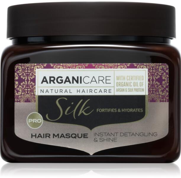 Arganicare Silk Protein Fortifying Mask, 500 ml, Hajmaszkok nőknek, Úgy érzi, hogy a hajának intenzívebb ápolásra van szüksége, mint amit a balzsamok vagy kondicionálók nyújtani tudnak? A kiváló Arganicare Silk Protein Fortifying Mask hajmaszk remekül színesíti hajápolási rutinját. A speciális problémák megoldását célzó tápláló anyagok magas koncentrációjának kösz