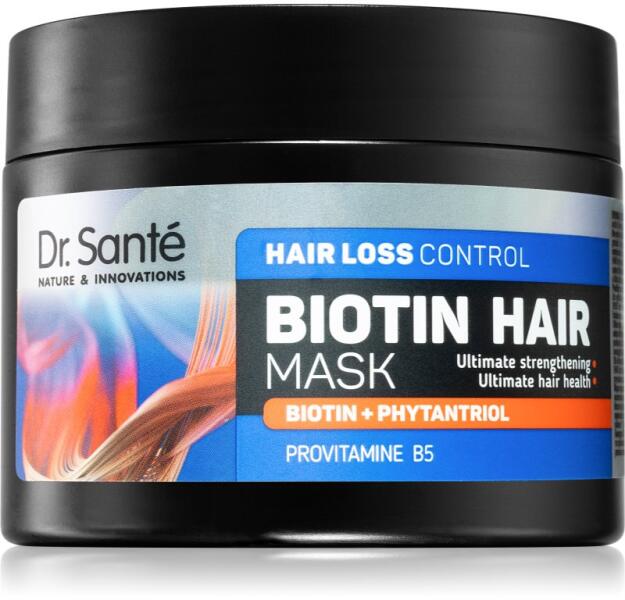 Dr. Santé Biotin Hair, 300 ml, Hajmaszkok nőknek, A minőségi Dr. Santé Biotin Hair hajpakolás elengedhetetlenül hozzá tartozik a rituális hajápoláshoz. Kényeztesse haját egy rövid regenerálással és meglátja, hogy vitalitással és szépséggel hálálja majd meg. Tulajdonságok: erősíti a hajszálakat teljes hosszukban regenerálja a hajszálakat javítja a hajszálak rugalmass