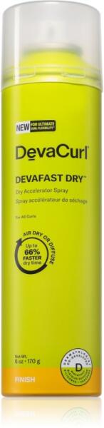 DevaCurl DevaFast Dry, 170 g, Hajápoló spray nőknek, Az öblítést nem igénylő DevaCurl DevaFast Dry hajápoló mindent megad a hajnak hajmosás után, amire éppen szüksége van. Tulajdonságok: kifejezetten hullámos és göndör hajhoz való nem nehezíti el a hajat Használata: Vigye fel a frissen mosott és törülköző száraz hajra. Hagyja a haját a levegőn megszáradni, vagy szá