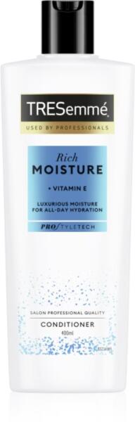 TRESemmé Rich Moisture, 400 ml, Hajkondicionálók nőknek, A hajmosás során a sampon megnyitja a haj felszíni szerkezetét – a kutikulát. Ezért fontos, hogy hajmosás után gondoskodjon a haja ápolásáról, hogy a kutikula újra bezáródjon. A kiváló TRESemmé Rich Moisture kondicionáló pontosan erről gondoskodik. Amellett, hogy lezárja a hajszálakat, biztosítja a haj táplál