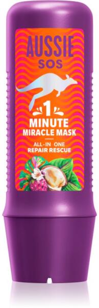 Aussie 1 Minute Miracle Repair Rescue, 250 ml, Hajmaszkok nőknek, Úgy érzi, hogy a hajának intenzívebb ápolásra van szüksége, mint amit a balzsamok vagy kondicionálók nyújtani tudnak? A kiváló Aussie 1 Minute Miracle Repair Rescue hajmaszk remekül színesíti hajápolási rutinját. A speciális problémák megoldását célzó tápláló anyagok magas koncentrációjának köszönh