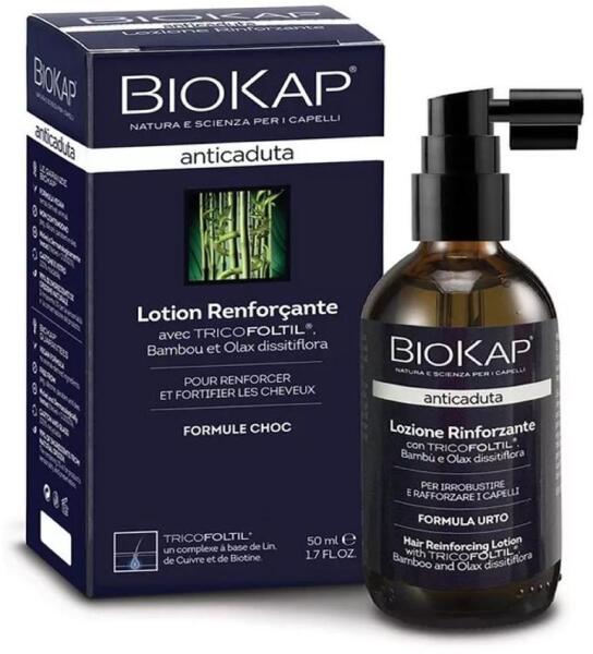 Biokap hajhullás elleni erősítő folyadék, 50 ml - Sokkoló kezelés az erősebb hajért- A BioKap® Anticaduta erősítő folyadék egy sokkoló kozmetikai kezelés, amely kifejezetten a haj erősítésére és megvastagítására lett kifejlesztve, ellensúlyozva a túlzott hajhullás és a ritkulás problémáit - Növeli a haj ellenálló képességét, javítja a haj vastagságát és sű