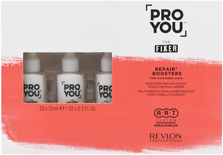 A haját gyakori hajszárítás, formázás vagy színezés károsítja? Adjon hajának mély regenerálódást, és állítsa vissza ragyogó és puha megjelenését. A Revlon Professional Pro You The Fixer Repair Boosters koncentrált kezelés regenerálja a sérült hajrostokat, helyreállítja a hajvégek töredezettségét és egészséges megjelenést nyújt a hajnak. Ezenkívül a kezelés