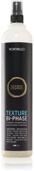Montibello Decode Texture BI-PHASE, 400 ml, Leöblítést nem igénylő kondicionálók nőknek, Az öblítésmentes Montibello Decode Texture hajkondicionáló a haj regenerálásának sok más előnnyel is járó egyszerű és gyors módját jelenti. Tulajdonságok: táplálást és regenerálódást biztosít mélyrehatóan helyreállítja a hajat a haj fényes és selymes tapintású megkönny