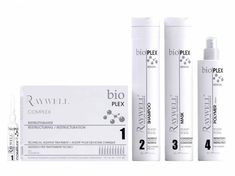 A RAYWELL Bio plex termékcsalád, a roncsolódott haj helyreállításában nyújt segítséget 4 lépésben. A csomag tartalma: -Raywell 1. Complex rekonstrualó ampulla csomag (10*5ml) -Raywell 2. Plex sampon – Tápláló, Cuticula záró, No SLS, No Parabén (300ml) -Raywell 3. Plex Mask – Mélyhidratáló, Keratin és Triglycerin tartalmú, No Parabén (300ml) -Raywell 4. Plex Polymer Spr